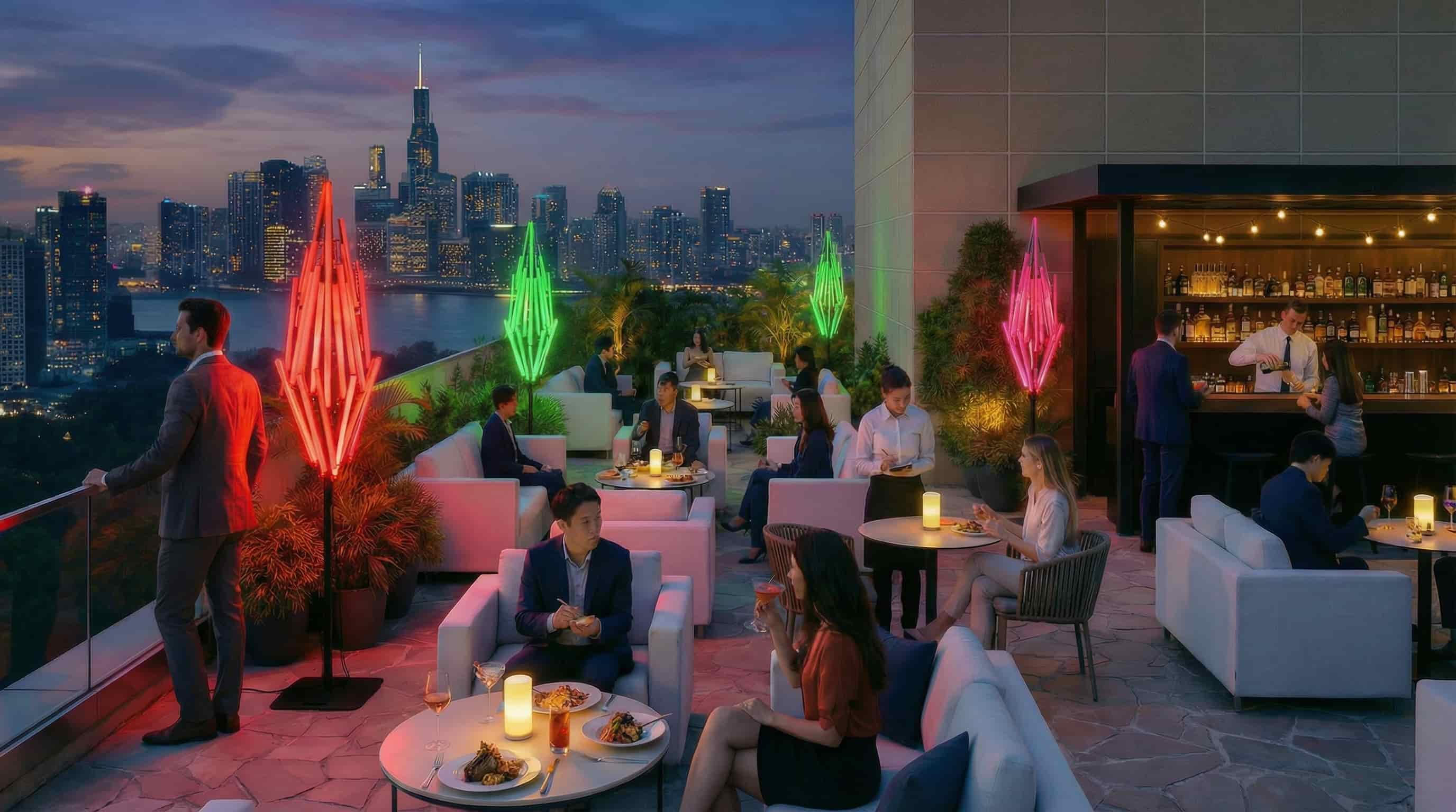 -designed to shine at beach clubs, skybars, lounges, elevating every setting with warmth, energy and character